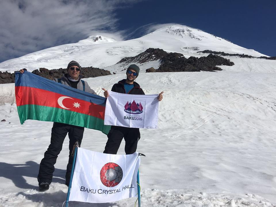 Technical director of the Baku Crystal Hall Elchin Mammadov and director of R-Com Tural Mammadov have climbed Mount Elbrus, one of the highest mountain peaks of Europe and Russia (5,642 meters). While on Mount Elbrus, they raised the state flag of Azerbaijan and the banners of the Crystal Hall and the 42 nd World Chess Olympiad due to be held in Baku this September.