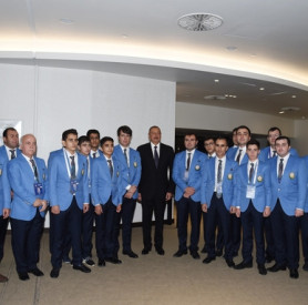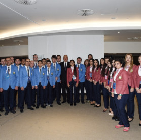 President Ilham Aliyev meets members of national teams