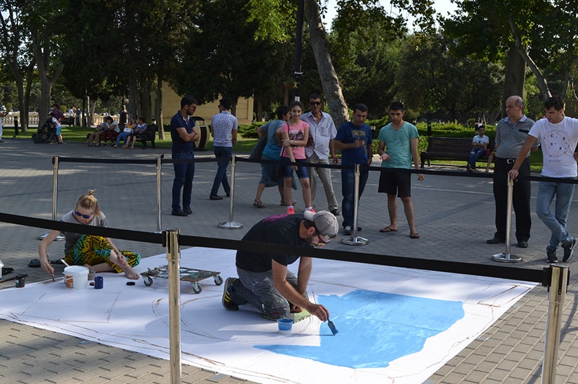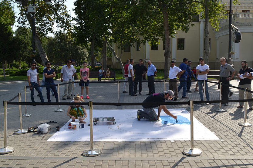 Renowned 3D street artist from Ukraine Alex Maxiov is in Baku at the invitation of the Baku Chess Olympiad Operating Committee. Engaged in street art since 1990, Alex is the winner of numerous festivals held in Germany, Italy and Russia. He has started work on another 3D street art image dedicated to the 42nd World Chess Olympiad. We invite everyone interested in watching Alex at work to the National Park (near the Puppet Theater).