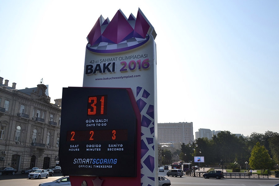 The countdown timer of the 42nd World Chess Olympiad has been launched in the center of Baku. In addition to the logo of the World Chess Olympiad, the timer reflects the number of days, hours and minutes left for the start of the prestigious event.