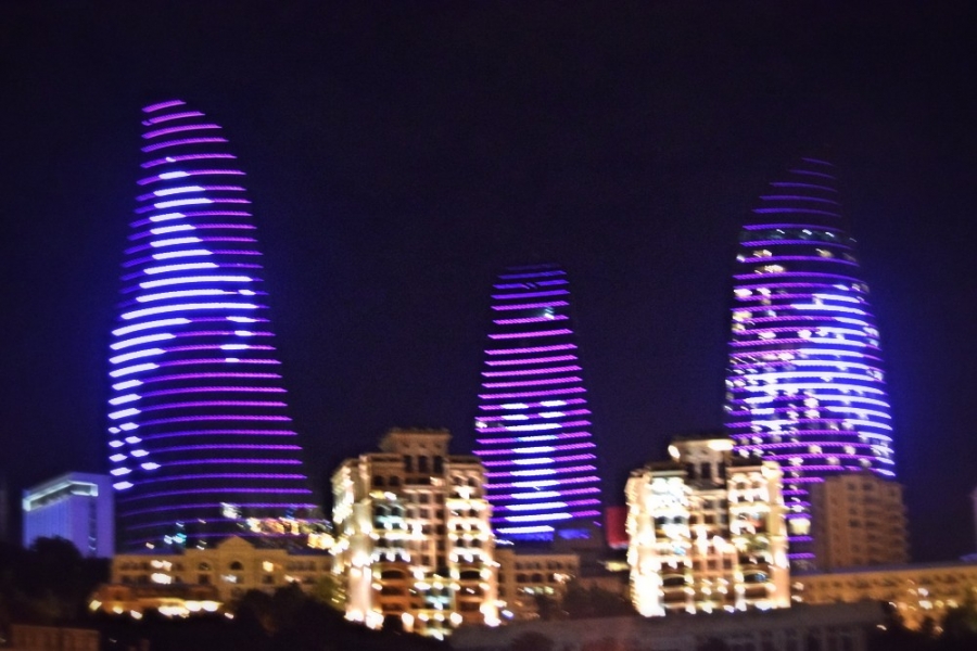 Considered to be a symbol of Baku, the Flame Towers provide support for the 42 nd World Chess Olympiad. The electronic lighting on the surface of the buildings in evening hours displays the