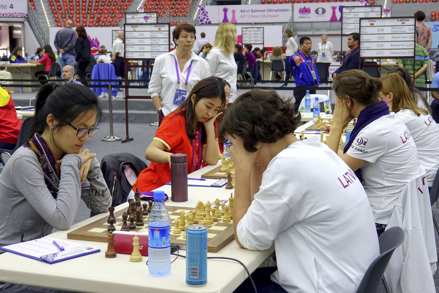 Holding such a high position brings additional responsibilities, which makes Dana’s presence in Baku even more remarkable. On September 9th the monthly Eurogroup meeting is held (the gathering of the Finance Ministers of all EU-member countries), to discuss the serious economic matters tantalizing the European Union. Still, Dana has found the time to come and represent her country in the Chess Olympiad, and quite successfully so! Today she scored what is arguably the best individual result in her entire chess career: she beat World Champion Hou Yifan from China! Latvia narrowly lost the match 1.5-2.5, but the team certainly had reason to celebrate anyway.