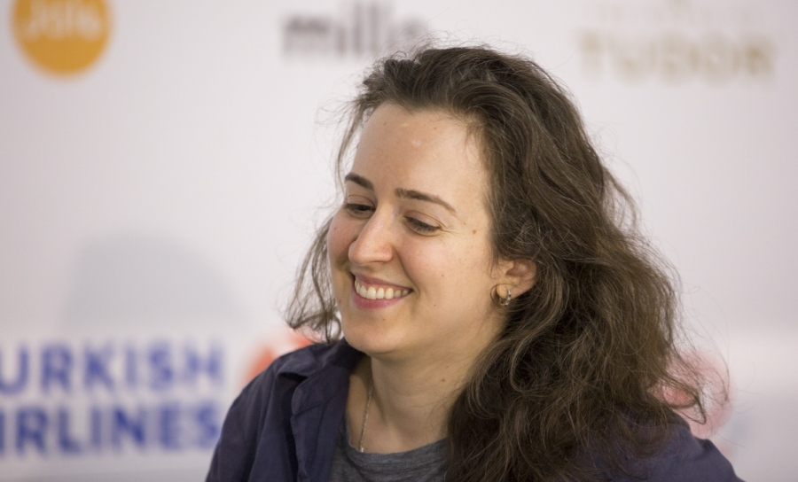 In the closing moments of Round 8, after a long and complicated fight, Irina Krush scored a hugely significant win against former World Champion Alexandra Kosteniuk to give the United States team a resounding victory over Russia in the Women’s section leaders’ clash. After catching her breath (and going through a customary anti-doping check), Irina joined Susan Polgar in the Press Center.