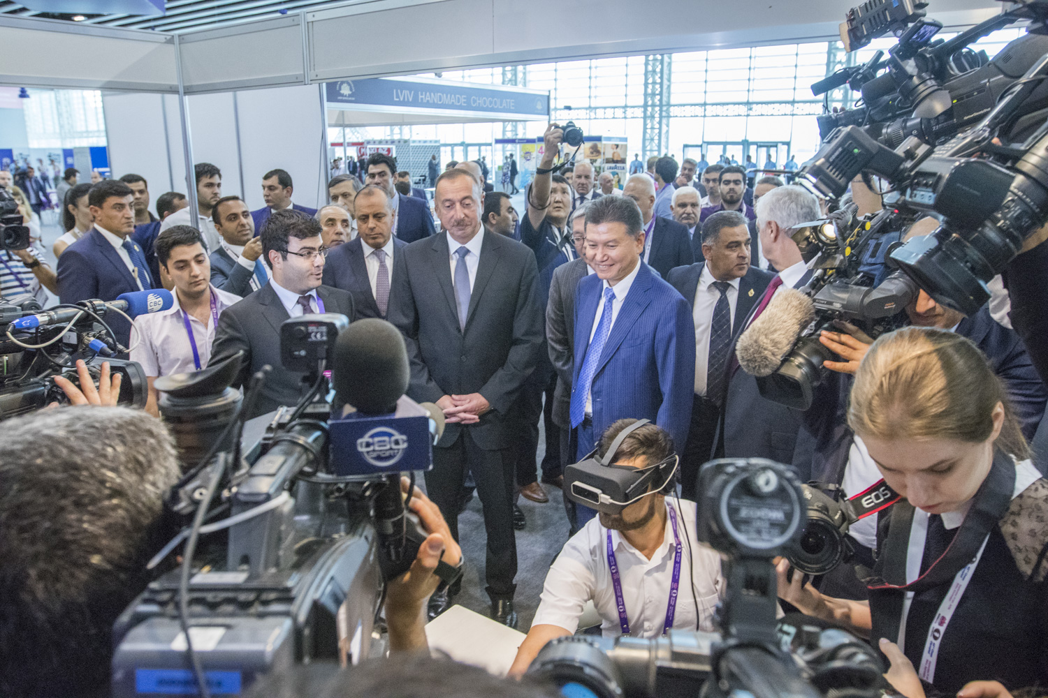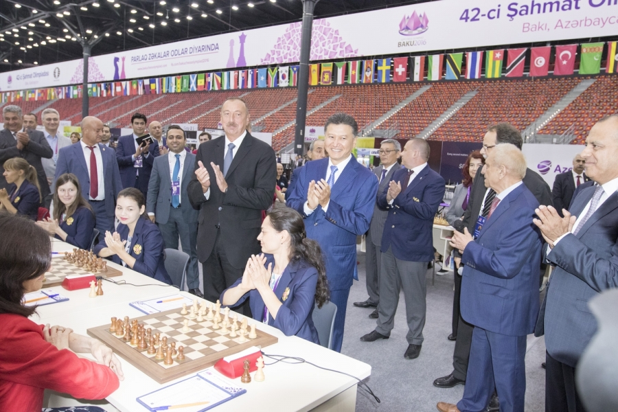President of the Republic of Azerbaijan Ilham Aliyev opened the first round of Chess Olympiad by making the honorary move 1.d4 in the game Shakhriyar Mamedyarov - Rodwell Makoto of the match Azerbaijan-Zimbabwe.