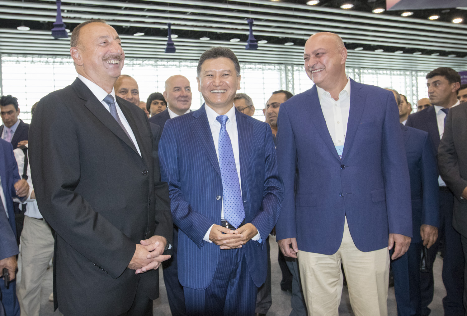 Joining the President of the Republic of Azerbaijan were FIDE President Kirsan Ilyumzhinov, Chairman of the Organizing Committee of the Baku Chess Olympiad and Azerbaijan’s first Deputy Prime Minister Yaqub Eyyubov, Minister of Youth and Sport Azad Rahimov, President of the Azerbaijan Chess Federation and Chairman of Central Bank Elman Rustamov, Director of the Chess Olympiad Mahir Mamedov, Chief Arbiter Faik Gasanov and Tournament Director Takis Nikolopoulos.