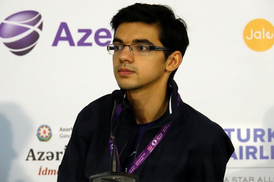 Anish Giri, top board of the Netherlands team, joined Susan Polgar for a press conference right after his game against Michael Adams from England was concluded drawn.
