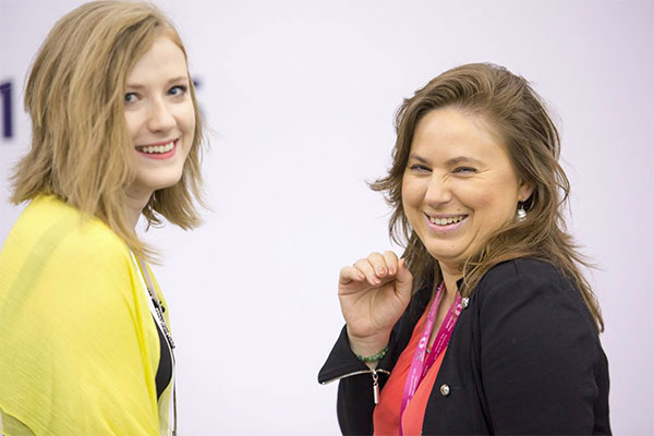 Anna Rudolf is her with GM Judit Polgar, captain of the Hungarian Team (photo by M. Emelianova)