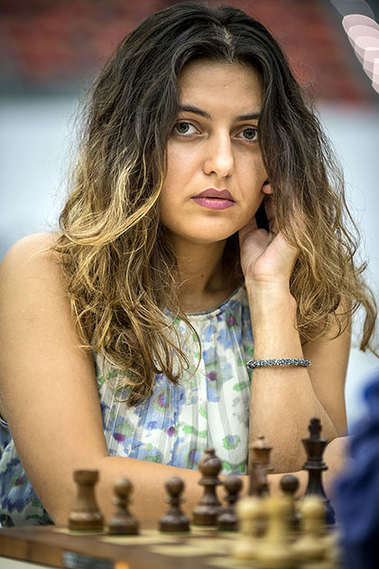 Unfortunately, Georgia’s woes did not end there. While first board GM Dzagnidze (2522) also failed to score, splitting the point with WIM Janelle Frayna (2281), IM Salome Melia (above - photo by David Llada), rated 2419, also lost to Filipino WIM Catherine Secopito (2119) sealing their fate for one of the biggest upsets ever in the Women’s Olympiad.