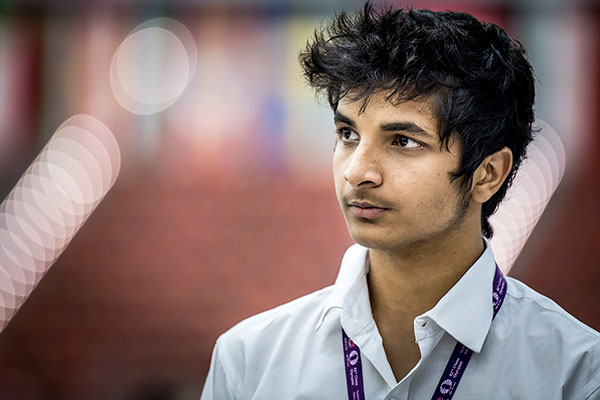 India has also been undefeated, and unthreatened, and will face the second Azerbaijani team in round three. GM Vidit Gujrathi, playing on board two, has scored 2.0/2 for his team. (photo by David Llada)