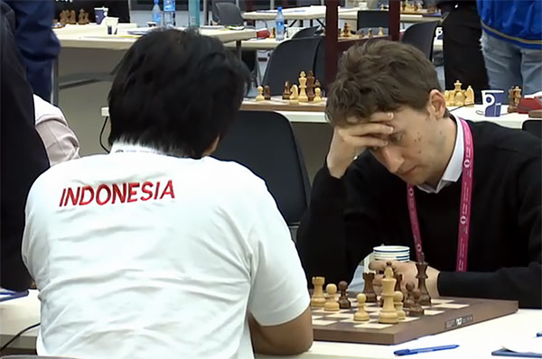 Of the highest rated upsets, Luke McShane’s loss to his Indonesian opponent Irwanto Sadikin The (seen above). The Indonesian had played a great game and made the Englishman suffer throughout, but by the time they reached the queen endgame, Luke had every reason to believe he should hold, even if painfully. Indeed it was a theoretical draw all the way until the 68th move, when he blundered, after which there was no recovery.