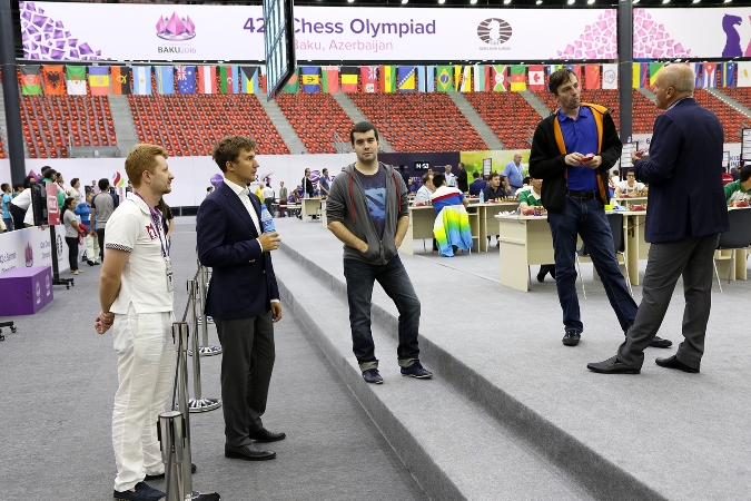 The Azerbaijani team, spearheaded by GM Mamedyarov, has been immaculate, and beat the Macedonian team with a clear 4-0. In round three they will face the Hungarian team. (photo by David Llada)