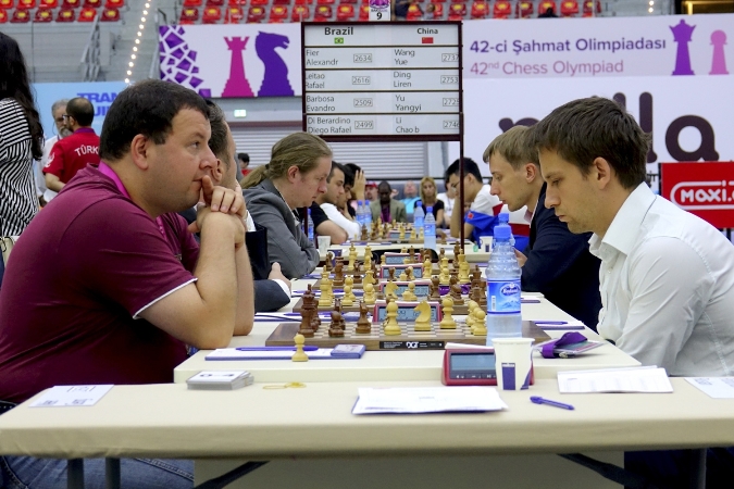 Magnus Carlsen and Sergey Karjakin were both held to draws on Sunday, with no team in either section now able to boast they've won every single game in the Baku Olympiad. Heavyweight outfits like Poland, Hungary, Germany and Norway tasted defeat for the first time, while in the women’s section top seeds China were lucky to drop only a point against Vietnam. It’s looking good for Russia, whose men’s team takes on Ukraine in Round 4.